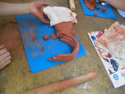 子どもたちはねんどの立たせ方をいろいろ試します。