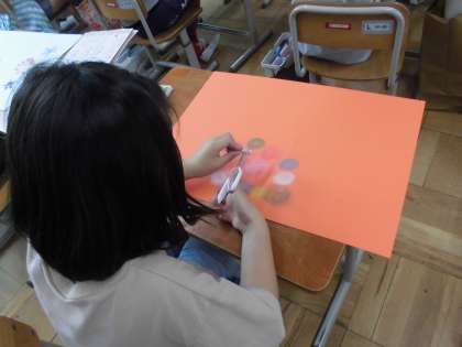 絵の具だけじゃなく,コンテを使ったり,貼り絵をしたりしていました。