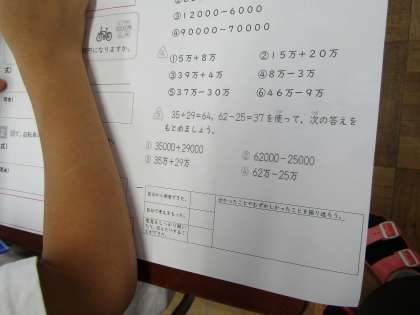今日は,大きな数の足し算をしました。