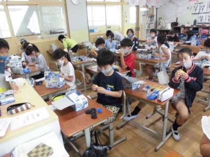 電池のはたらきを学習した子どもたちは最後に車づくりに取り組んでいます。