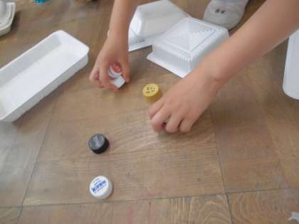 トレイやキャップを使ってどんなことができるか考えました。
