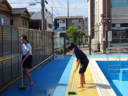 みんなが気持ちよくプールに入れるように学校を代表して掃除をしてくれました♪