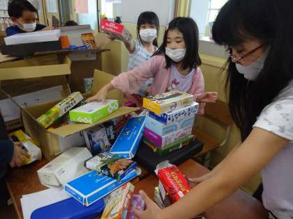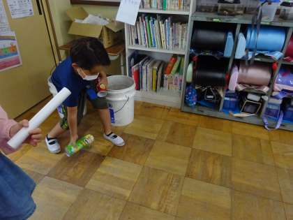 箱をつみあげたり,筒を転がしたりして遊べました。