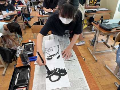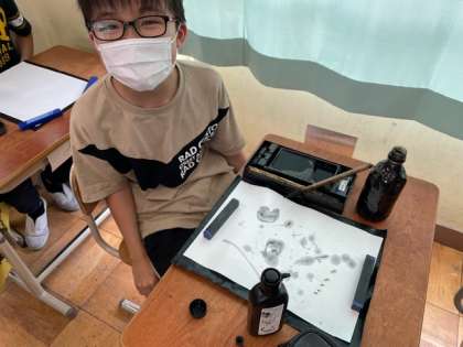 何かをイメージして描くというより,にじんでできた模様をみて描いていました!