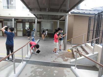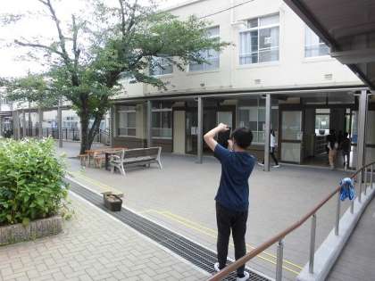今日の授業では,学校のなかで夏を感じる場所をタブレットをもって撮影しました。