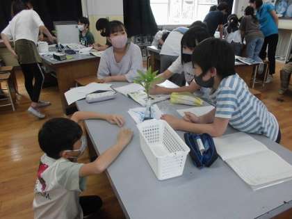 6年生の理科「植物の成長と水の関わり」の学習の様子です。