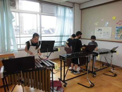 楽譜をしっかり見ながら,何度も練習をしている子や,友だちにアドバイスをもらいながら頑張る子など,さまざまです。