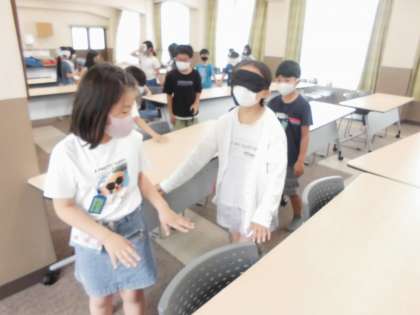 アイマスクをして決められたコースを歩きます。
