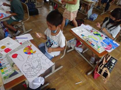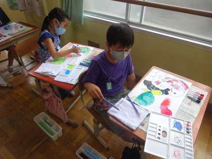 子どもたちの大好きな絵の具を使った学習です。