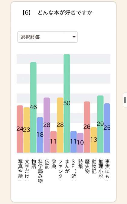 どんなときに本を読んだり,どんなテーマの本を選んでいるのか,ロイロノートのアンケートで集計をしました。