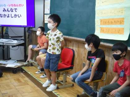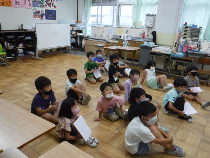 今日も1年生と楽しい交流をしました!お互いに自己紹介をした後,そらいろをよく知ってもらうようにクイズをしました。「そらいろのはたけでさつまいもをうえている 〇か✖か」など盛り上がりました。「またね!」と教室に帰って行く1年生。これからもよろしくね!