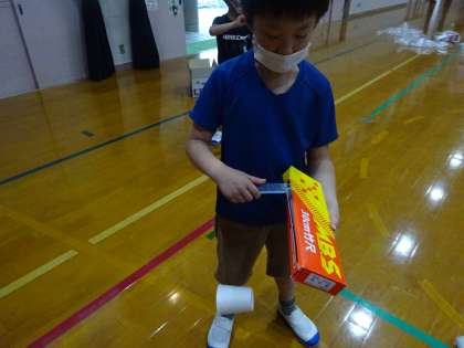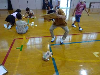扇ぐと進む車,ゴムの力ではねるおもちゃなどで遊びました。