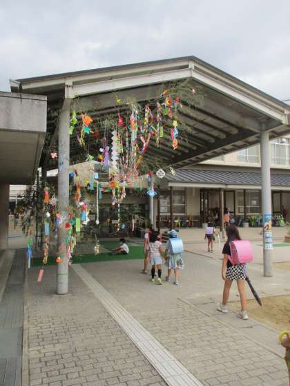 でも,大宮小学校の体育館の前には,立派な七夕の笹飾りがあります。