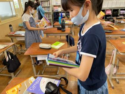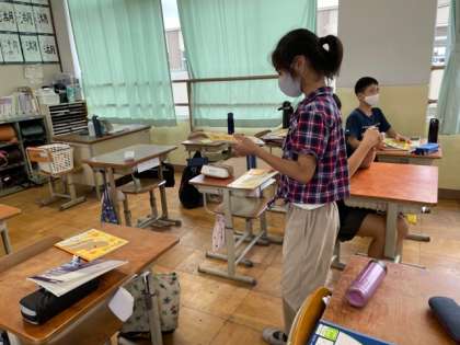 掃除時間,黒板の溝をきれいにしてくれている子がいました。