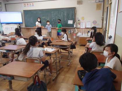 前回の学年リレー大会は花背山の家に向けて編成した『保健係』が中心になって行いました。2学期の開催を予定している『リーダー』たちの話し合いを覗いてみました。どんな企画を進めているのでしょうか。本番が楽しみです。