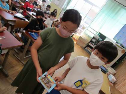目を見て伝わりやすくなる工夫をしたよ。ジャスチャーも付けたよ。など,相手意識をもった会話の工夫をたくさん実践できたようです。