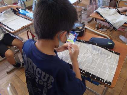 こつこつ進めてきた「手作りランチョンマット」が,完成間近になってきました。自分の名前を刺繍して,アイロンで貼りつく布で飾りつけをすれば,自分だけのランチョンマットが完成です。
