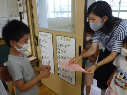 2年生の「お楽しみ会に来てね!」とステキな招待状が届きました。今日が本番です。「段ボールのめいろ」と「だるまさんがころんだ」に参加しました。