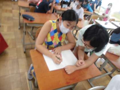 ピッタリ50%のペアはいませんでしたが楽しく夏休みの出来事を交流することができました。