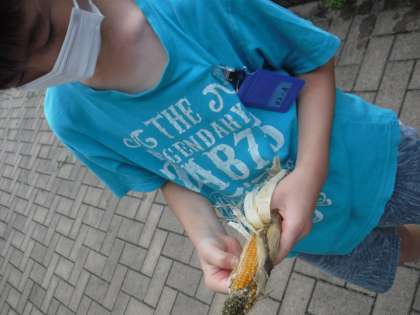 今年は,雨がよく降り心配していましたが,今日収穫するときれいな粒が見えました!これから1か月ほど干さないとポップコーンにできません。立派なとうもろこしなので出来上がりが楽しみです!