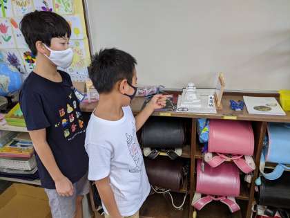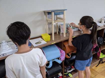 夏休みの宿題,自由研究・工作が教室に並び始めました。一つ一つの作品にどんな楽しさや難しさがあったのかを交流します。こだわりの詰まった楽しい作品でいっぱいです。