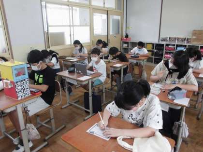 今日は,子どもたちが夏休みに取り組んだ自由研究の作品を紹介しました。