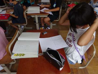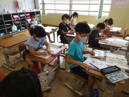 国語科で,夏を感じたことを思い出して,カードを書きました。