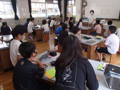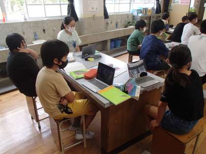 理科の学習は「生命のつながり」という単元に取り組んでいます。1学期に植えたアサガオが発芽し,花を咲かせました。2学期の学習では,継続して花のつくりについて学習しています。