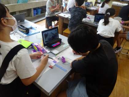アサガオの花のつくりを観察しました。近距離(グループ)での観察ができないので,実物と自分のタブレットに写した写真を見て,分かったことを書きました。
