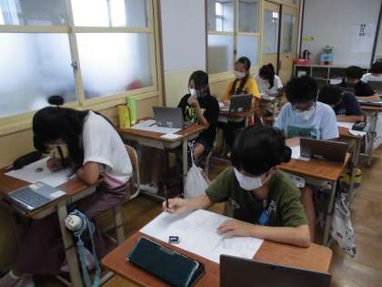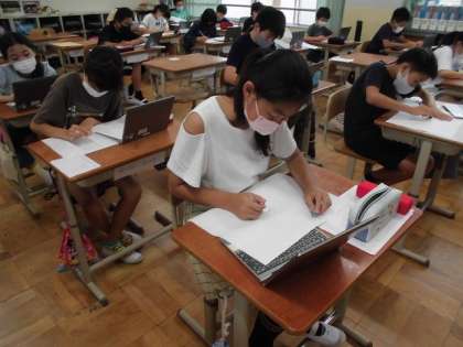 6年生の図画工作科「お話の絵をかこう」の学習の様子です。