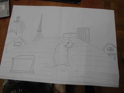 「ネコのミヌース」の本を読んで,想像したことを絵にあらわしていきました。