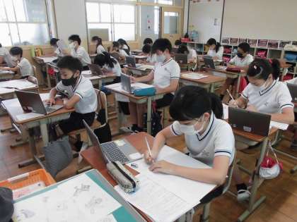 6年生の図画工作科「お話の絵をかこう」の学習の様子です。