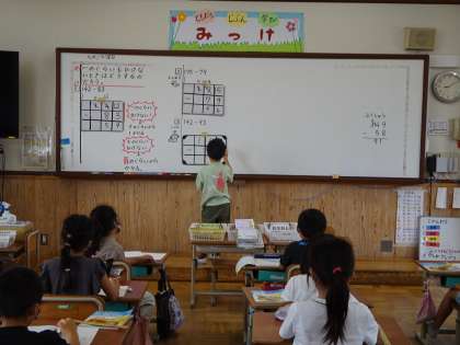一のくらいも十のくらいも引けないときのひき算を学習しました。