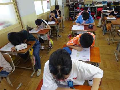 今日は算数の「立体の体積」のテストを行いました。