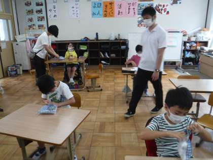 そらいろでは,「自分たちできることをやってみよう!」を取り組んでいます。今日は,みんな気持ちを一つに頑張っていくためにSDGsのマークをプリントしたTシャツをみんなで着ました。「世界でひとつだけのTシャツ」です。
