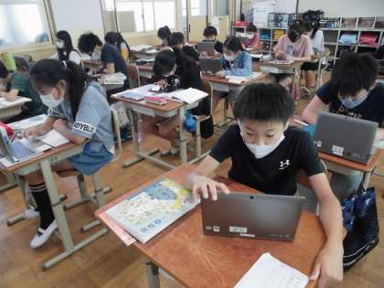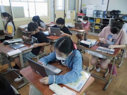 6年生の国語科「やまなし」の学習の様子です。