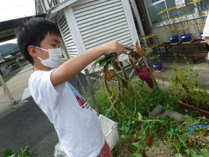 明日は,「大宮農園」のサツマイモの収穫をします。明日も大きいのが収穫できるかな。そらいろ畑のサツマイモは,鳴門金時という種類です。