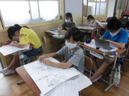 子どもたちは,ネコのミヌースのお話をイメージしながら,作品づくりをしています。