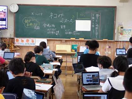 お話の絵に取り組んでいます。お話から絵に描きたい場面を想像し,下描きしました。