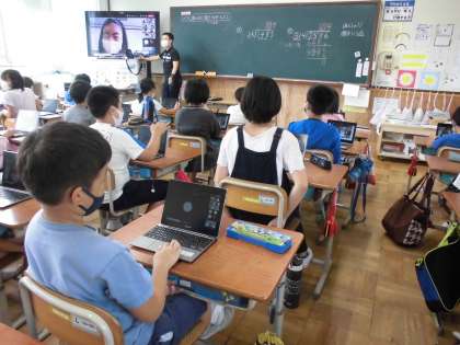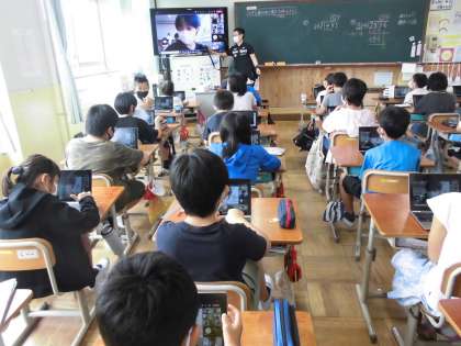 総合の学習では,タブレットを使って,ウェブ会議を行いました。