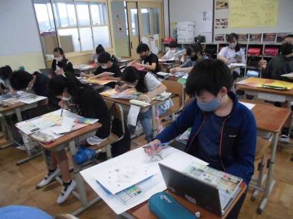 6年生の「お話の絵をかこう」の学習の様子です。