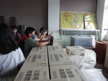 学校には避難してきた人のための物資がたくさんあります。それを実際に見学しました。