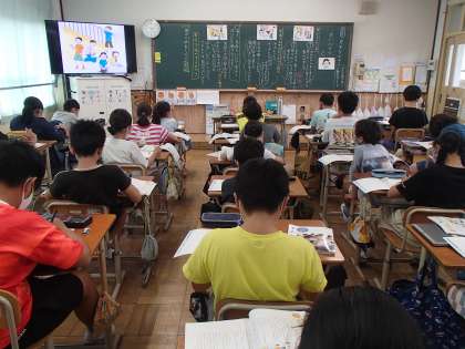 教材のテーマは「男女仲良く」です。子どもたちからは,「男女で一緒に学習すると,新しい意見や考え方が聞けて面白い。」「一緒に遊ぶ時は,みんなが楽しめるようにルールを工夫している。」など,普段から男女平等の感覚が豊かな5年生でした。