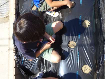 穴をあけ,種をいれました。