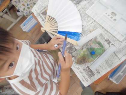 スポーツフェスティバルで使う扇子の色塗りをしました。