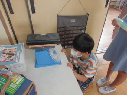 算数の学習でいろんなはかりを使って身の回りのものの重さをはかってみました。