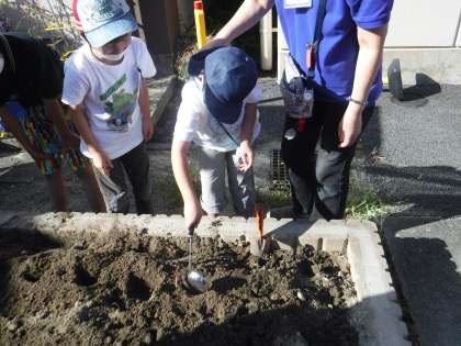 中庭側にあるそらいろ畑にも青首大根と聖護院大根の種をまきました!