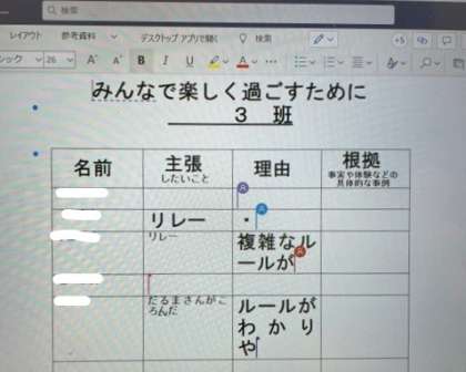 そのあとは,タブレットをつかって班のみんなと考えを共有しました。