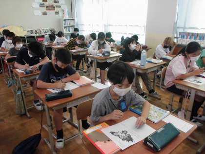 6年生の国語科「鳥獣戯画を読む」の学習の様子です。