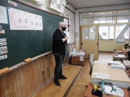 正しい英語の発音を子どもたちは一生懸命まねしていました。